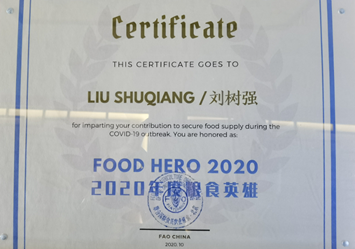 日前,在聯合國糧農組織舉辦的“糧食英雄”投票評選中,天津港強集團創始人劉樹強因有效地保證了天津市及華北地區老百姓的菜籃子在疫情期間不受影響,獲聯合國糧農組織、國家農業部國際合作司、天津市委市政府、天津市農委推薦,與全國另外4位候選人入圍,這些人都是疫情期間為保障食物供給而貢獻力量的基層糧食英雄。最終,劉樹強優勢票選獲評聯合國糧農組織“2020年度糧食英雄”。